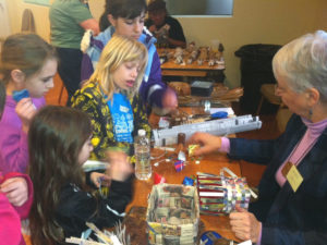 SWST Members Howard Rosen, Barry Goodell, and World Nieh (shown in the picture of those that worked on and performed at the event) were represented on the Organizing Committee. Several technical presentations followed by demonstrations of Native American woodcarving, woodturning, basket making, musical instrument craftsmanship, and fish decoy carving were held on the first day. Christopher Zambelli, a master guitar maker, showed how the tonal quality of the guitar was affected by the construction and types of woods used. The following day consisted of a children’s program with wooden toys and games, followed by a tour of a private wood art collection. Barbara Weber, an accomplished wood basket maker, demonstrates her abilities to the upcoming generation.