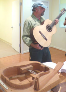 SWST Members Howard Rosen, Barry Goodell, and World Nieh (shown in the picture of those that worked on and performed at the event) were represented on the Organizing Committee. Several technical presentations followed by demonstrations of Native American woodcarving, woodturning, basket making, musical instrument craftsmanship, and fish decoy carving were held on the first day. Christopher Zambelli, a master guitar maker, showed how the tonal quality of the guitar was affected by the construction and types of woods used. The following day consisted of a children’s program with wooden toys and games, followed by a tour of a private wood art collection. Barbara Weber, an accomplished wood basket maker, demonstrates her abilities to the upcoming generation.